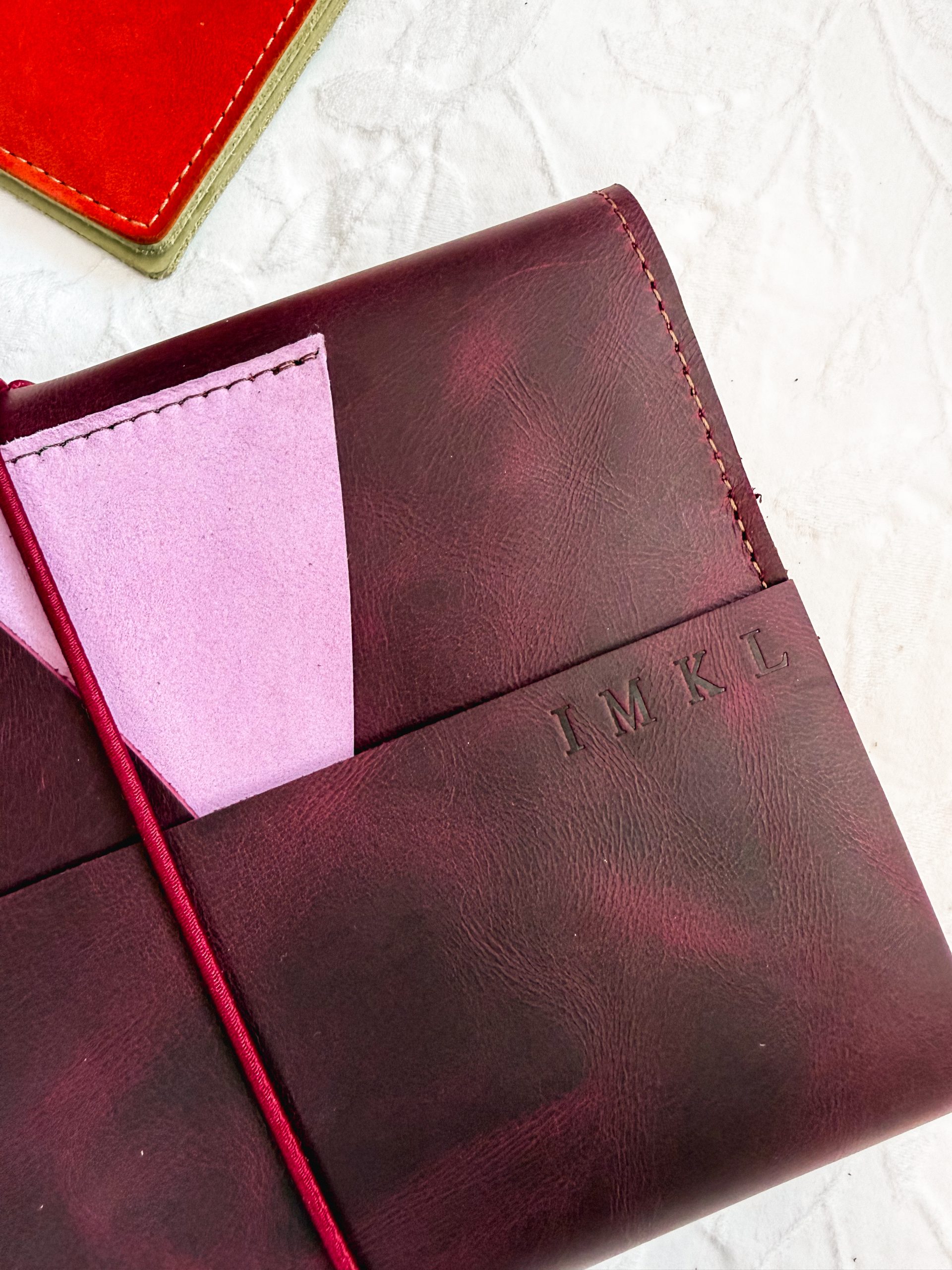 Cherry red pull-up leather planner cover