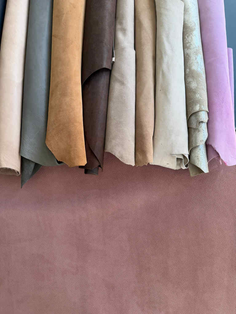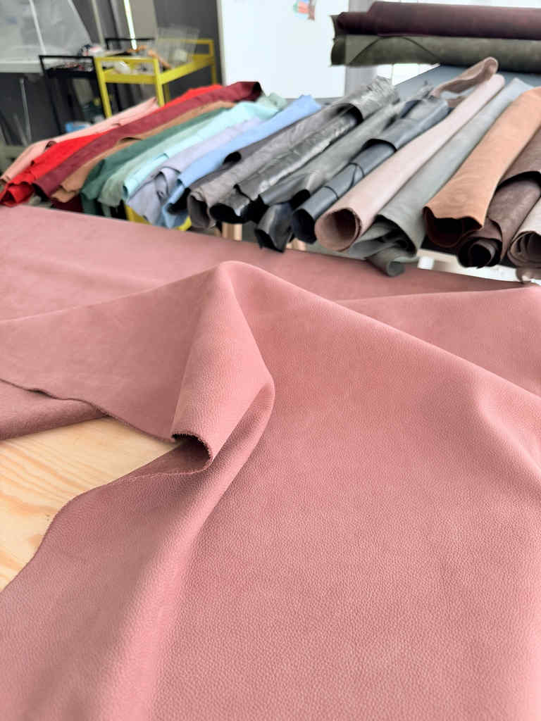 Dusty pink nubuck is new nubuck leather in my stash. It has that amazing nubuck feeling with a little bit of pebbly texture to it. It comes in this dusty pink purply shade.