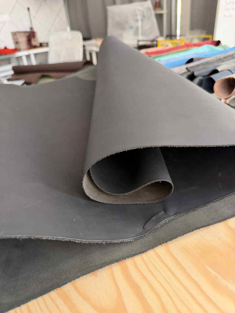 Matte black leather is structured black leather, on the thicker side but still hugs notebooks beautifully. It gets softer with time and use. This leather is also waterproof , and it will survive 30+ years of use easily.