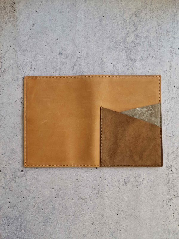 The design of the cover comes with an outside pocket and two full-length inner pockets. Inner pockets hold the notebook but can also be used to store extra stuff.