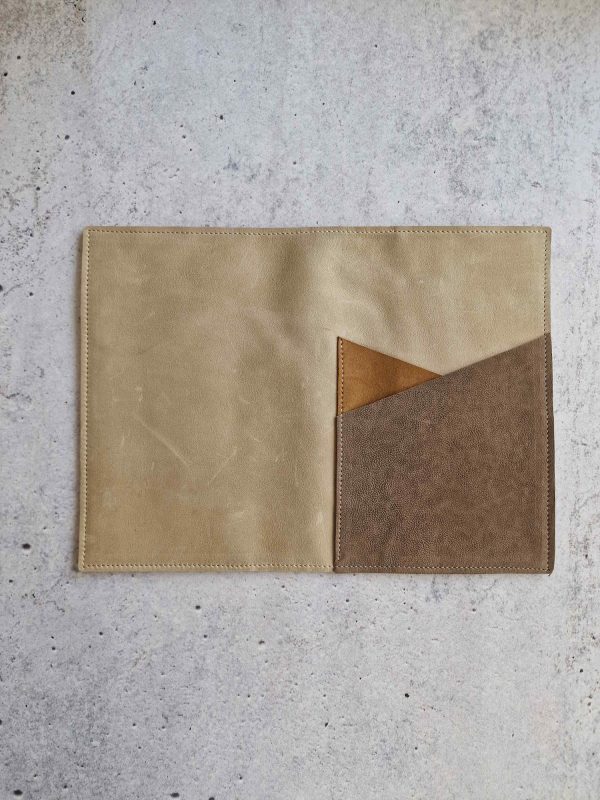 The cover’s design includes an outside pocket and two full-length inner pockets. The inner pockets hold the notebook but can also store extra stuff.